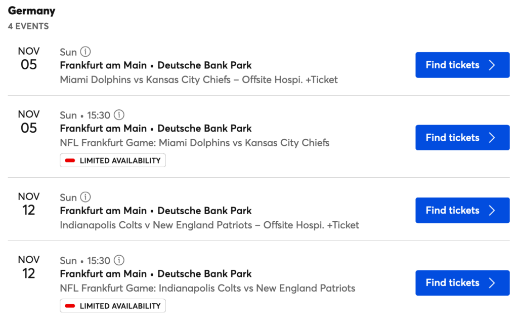 Tickets for the 2023 NFL Germany Games will be available through the official NFL website and authorized ticket vendors . Sales are already on and in high demand!