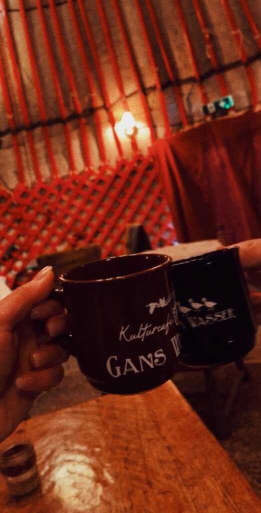 However, one of the best features (and our favourites) is that Gans am Wasser has a fire place furnished yurt. Here you can warm up and continue sipping your Glühwein if it’s too cold by the lake.