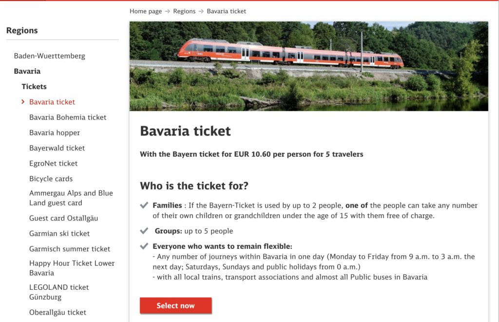 STEP ONE: Head over to the DB website for Bayern Tickets here and click on one of the red buttons that say “Select Now”.