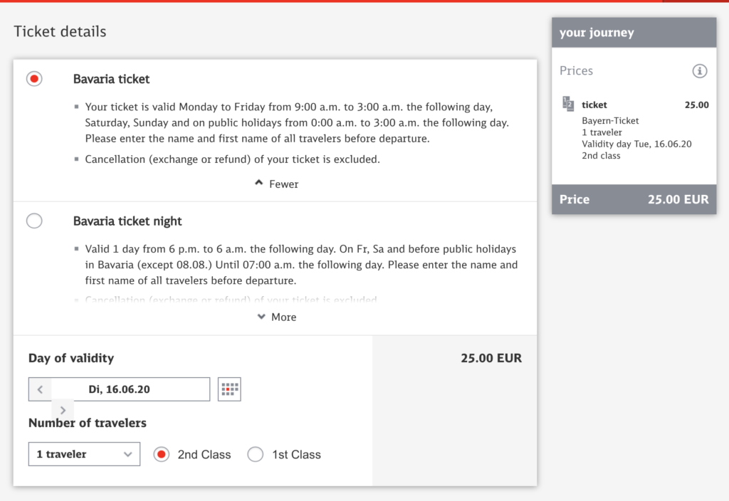 This isn’t exclusively a mistake with online tickets, but generally speaking, one rookie mistake that many travellers make with the Bayern Ticket is they forget when it’s valid. The Bayern Ticket does actually have different validity times depending on when you’re travelling, the main distinction being weekday vs. weekend/holiday. On weekdays, the ticket isn’t valid until 9am, whereas on weekends/holidays, they kick in at midnight, so be wary of that distinction.
