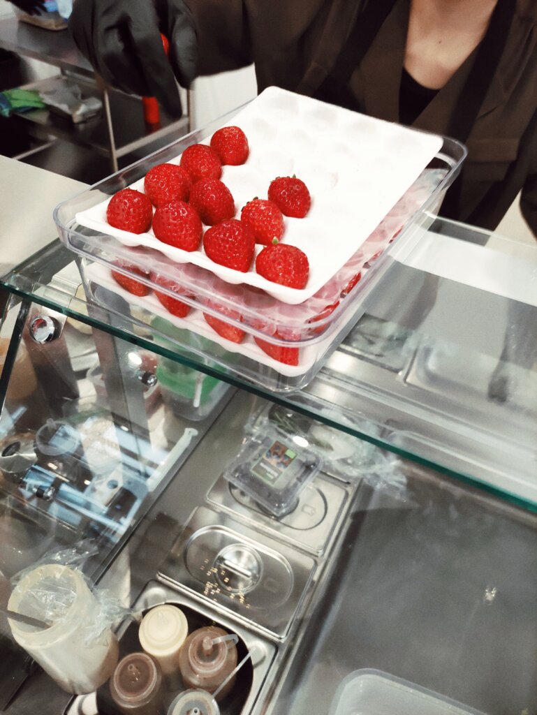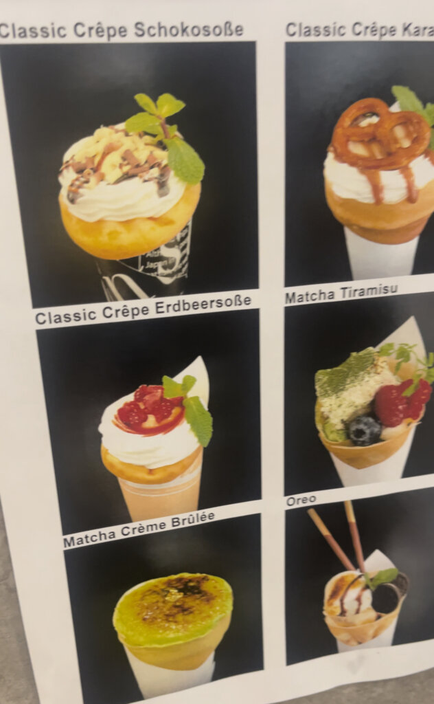 Entering the location at the corner of Haimhauserstraße on a slightly damp winter day, we were met with a view of the prep counter where staff were meticulously assembling the crepes and their sweet and savoury fillings into eye-catching individual cones.