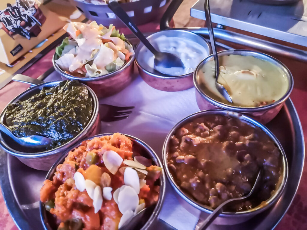 At Maharani, this dish comes with six different types of curries, salads or dips.