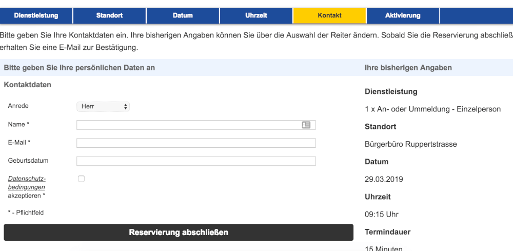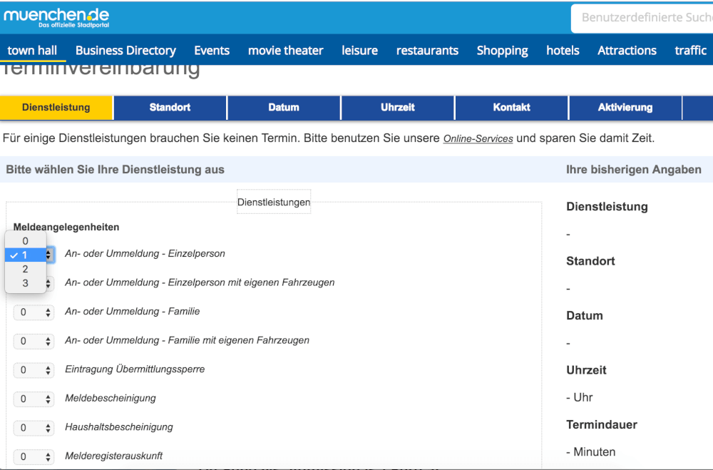 STEP ONE: To make an appointment online, head over to the fancy new portal here. Beware, the system is all in German, and doesn’t seem to play nice with Chrome’s auto-translate tool, so if your German is nicht so gut, make sure you have a translation app handy.