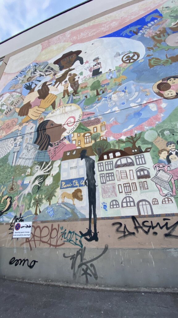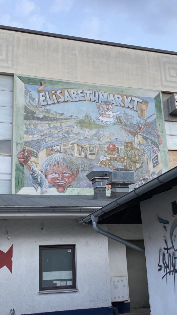 There are two very cute murals near Elisabethmarkt that we wanted to include. We wouldn’t exactly qualify them as “street art” but they’re nice nonetheless: