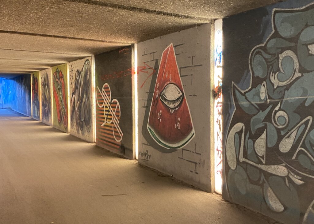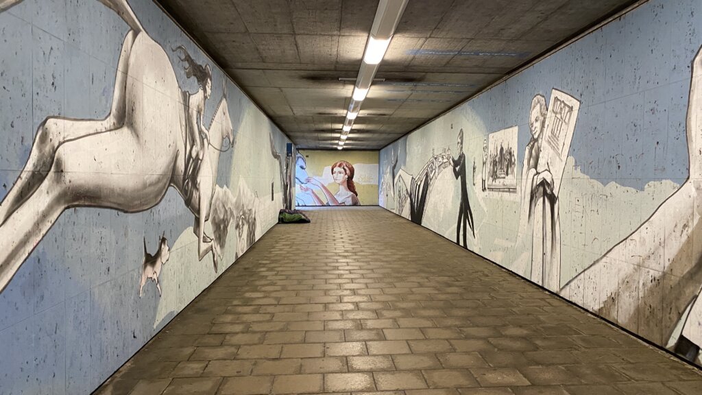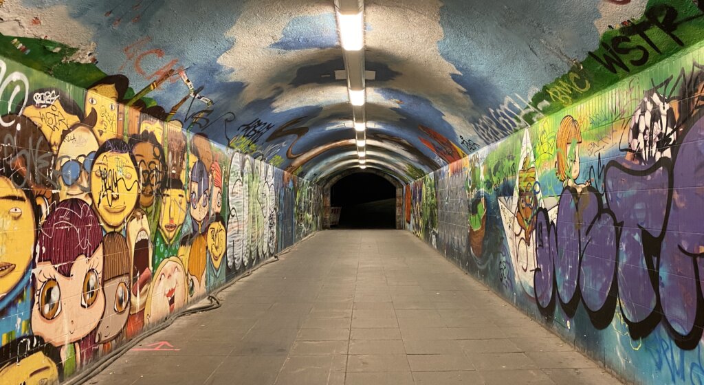 Yup, the tunnel running underneath the Friendensengel is filled with colourful murals, so be sure to take the stairs down next time and check them out.