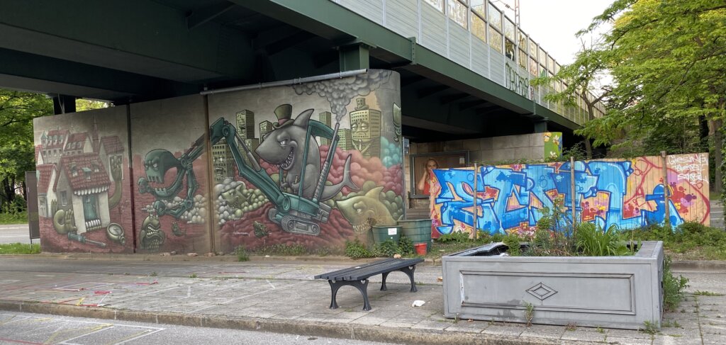 While not as organized or artsy (in our opinion) as some of the others on the list, you’ll also find a lot of spontaneous street art along the Isar in the tunnels frequently used by cyclists. A lot of these will be covered in tags and graffiti, but occasionally you will see some very skilled and beautiful mural art as well.