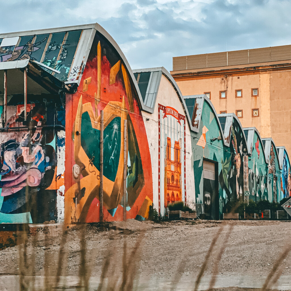 The Werksviertel-Mitte (located just behind Ostbahnhof) is a true treasure trove of murals and street art. It’s also one of our favourite ‘cool’ hangout spots in the city! If you like urban art, this area is a must-visit, with everything from painted shipping containers and facades decked top to bottom with art, to even the world’s largest mobile wheel.