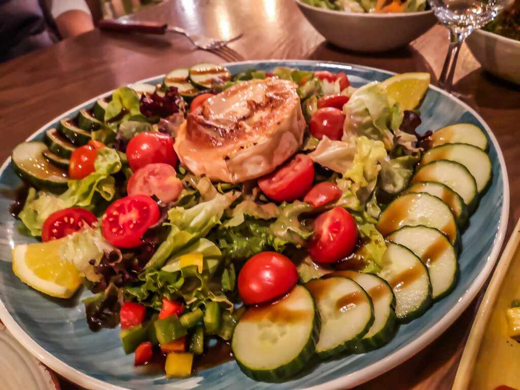 We also ordered a goat cheese salad with thyme-honey and cherry tomatoes.