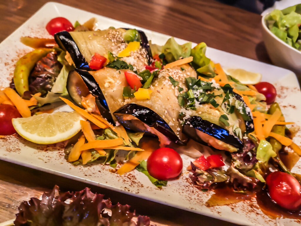 The tiganita was something new for us. It was baked eggplant and zucchini filled with a thick and creamy tzatziki-esque filling. Man, was this dish tasty. It was so full of flavor and textures that it was really hard to stop eating it. But I knew I still had the main course coming.