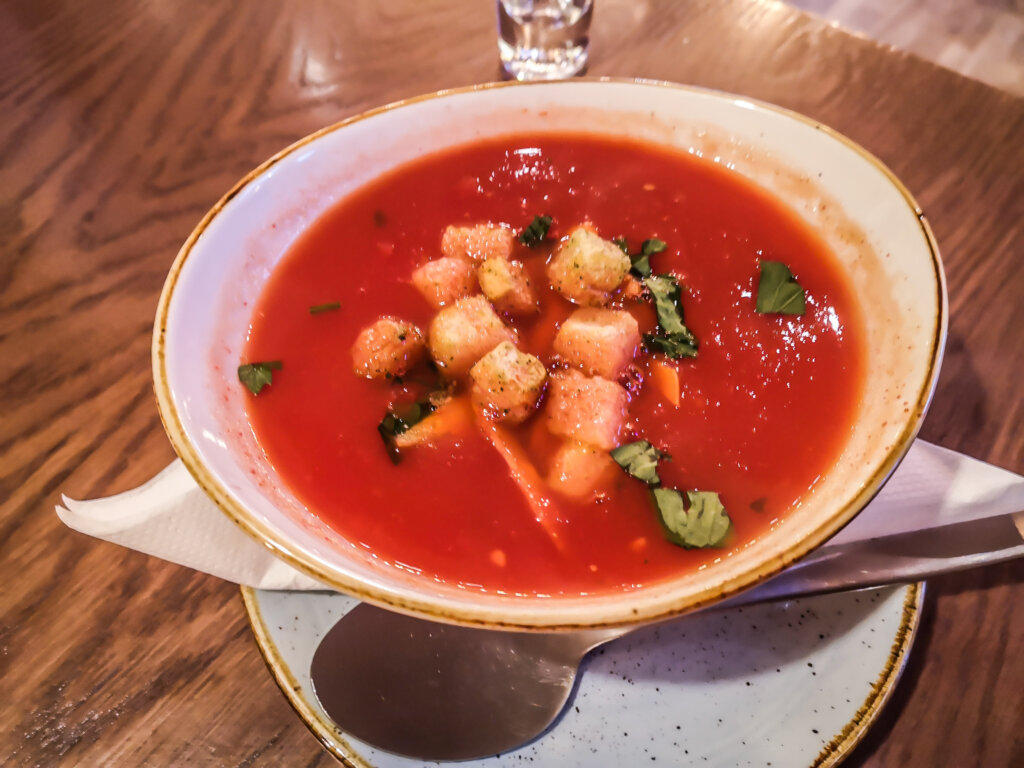 As far as the flavor and texture, it was a bit too tomatoey for our taste. Usually, you order the soup and you get a bit of creaminess and some other spices but this soup was pretty liquidy and to us didn’t taste like it was spiced enough.